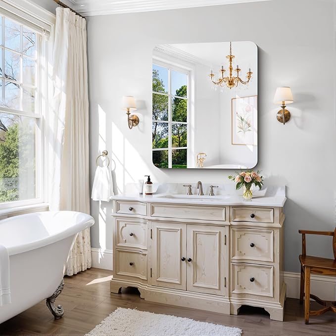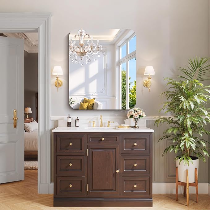 - CRYSTAL CLEAR REFLECTION: Crafted with premium high-definition float glass, our wall mirror delivers a 1:1 distortion-free reflection. It captures every detail clearly for makeup or shaving, while effectively reflecting light to make your bathroom or bedroom feel brighter and more open.