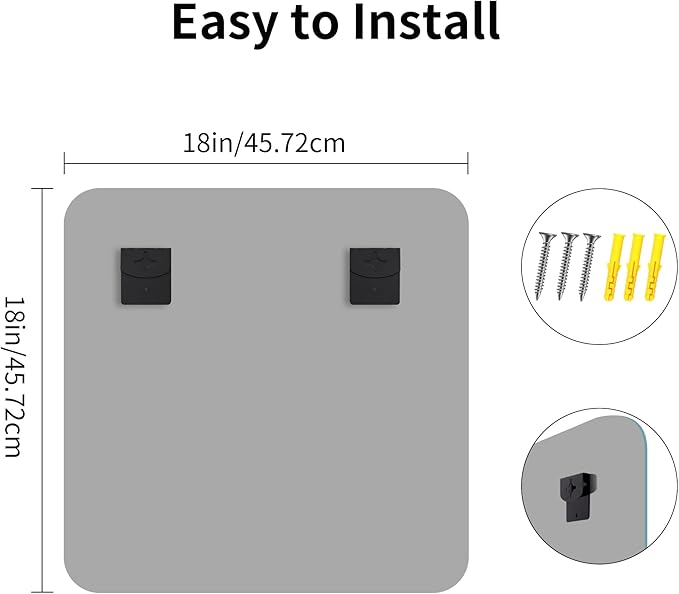 - Effortless Installation: Say goodbye to complicated setups. With included wall-mounted hardware, our frameless square mirror can be securely and effortlessly installed in just a few minutes. With its versatile design, our unframed 18x18 mirror adapts seamlessly to your needs. Save time and start enjoying your mirror sooner with easy and quick installation.