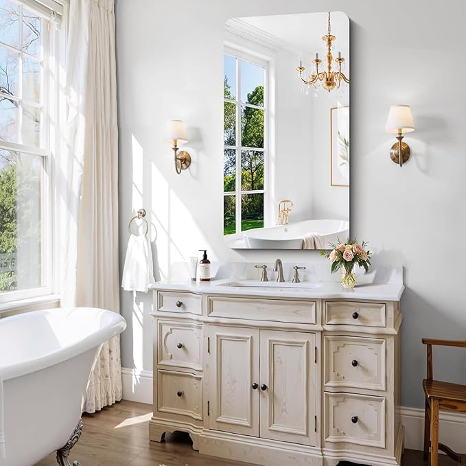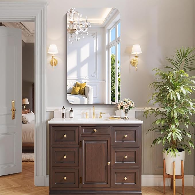 - CRYSTAL CLEAR REFLECTION: Crafted with premium high-definition float glass, our wall mirror delivers a 1:1 distortion-free reflection. It captures every detail clearly for makeup or shaving, while effectively reflecting light to make your bathroom or bedroom feel brighter and more open.