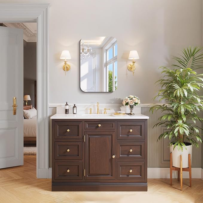 - CRYSTAL CLEAR REFLECTION: Crafted with premium high-definition float glass, our wall mirror delivers a 1:1 distortion-free reflection. It captures every detail clearly for makeup or shaving, while effectively reflecting light to make your bathroom or bedroom feel brighter and more open.