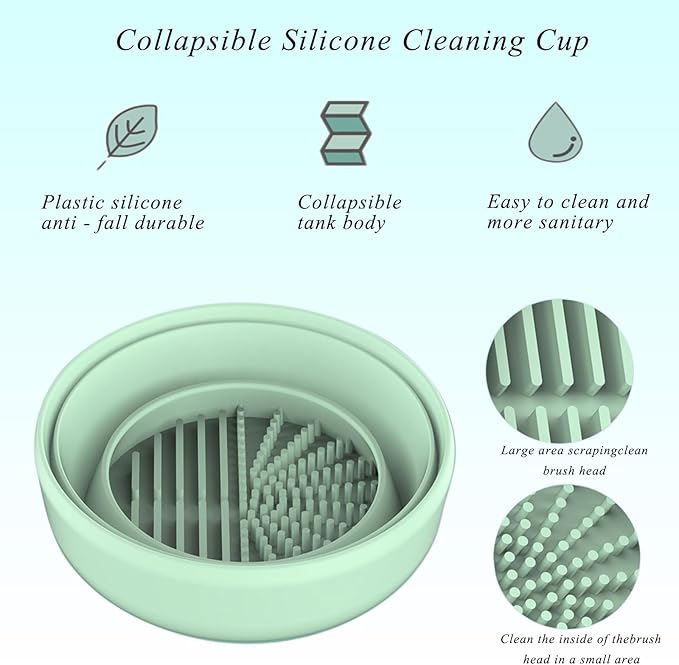 - Portable Foldable Design for Use Anywhere: The makeup brush cleaning container features a foldable silicone cleaning cup, which is soft, lightweight, and easy to store, making it convenient for travel. You can keep your brushes clean anytime, anywhere, saving luggage space