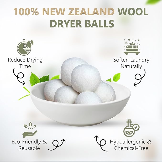 - Pack of 6 Premium Wool Dryer Balls Included: When you purchase the Laundry Detergent Dispenser , you will also receive a pack of 6 Premium Wool Dryer Balls. These eco-friendly dryer essentials help your clothes dry faster , reduce wrinkles , minimize lint , and provide a natural and organic alternative to fabric softeners.