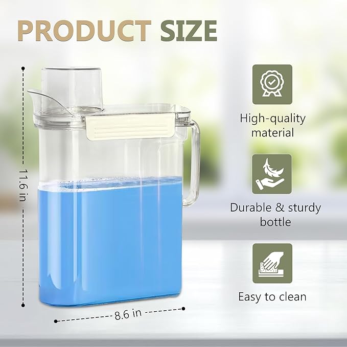 - Convenience and Organization in One Step: These Liquid Laundry Detergent Dispenser are very useful as a Laundry Organizer , helping your Laundry Accessories look more organized and making your laundry room a cleaner and more pleasant space.