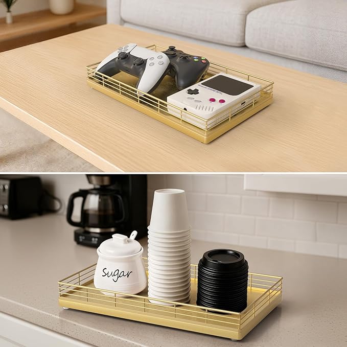 - Versatile Vanity & Countertop Organizer: The large rectangular surface works perfectly as a bathroom vanity tray, countertop organizer, or decorative catch-all for accessories, fragrances, and daily essentials—keeping everything neatly arranged and within reach