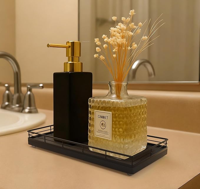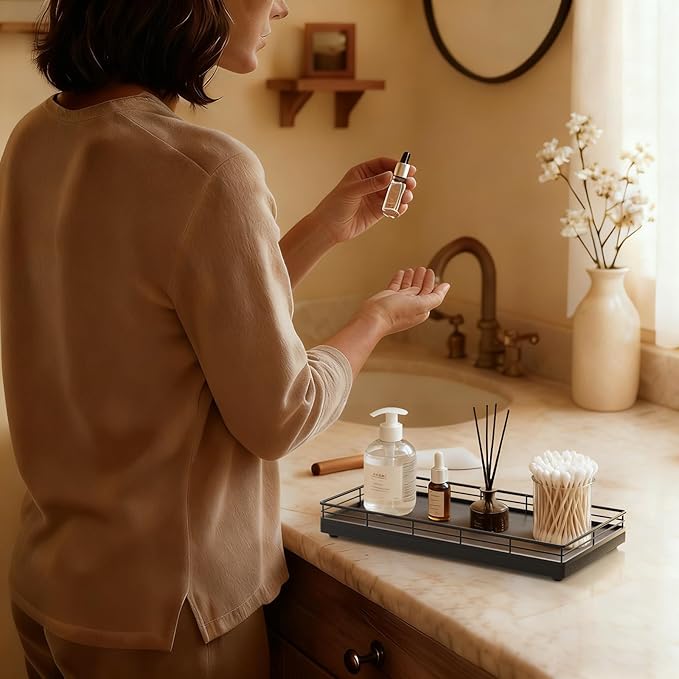 - Bathroom Vanity Organizer Tray: Designed as a bathroom counter tray for organizing soap, lotion, perfume, jewelry, and small essentials. Perfect for vanity tops, sink areas, and toilet tank surfaces