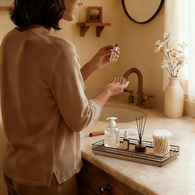 - Bathroom Vanity Organizer Tray: Designed as a bathroom counter tray for organizing soap, lotion, perfume, jewelry, and small essentials. Perfect for vanity tops, sink areas, and toilet tank surfaces