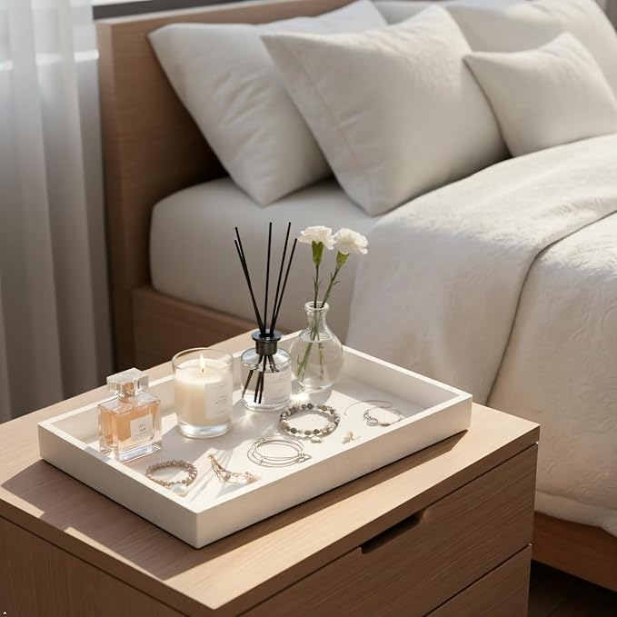 - Versatile Use: This travertine tray serves multiple purposes, with its exquisite craftsmanship lending each piece unique decorative appeal. Place it anywhere—bathroom, living room, bedroom, kitchen, office, or coffee table. Enhance its charm by adorning it with perfumes, jewelry, vases, candles, or other decorative items.