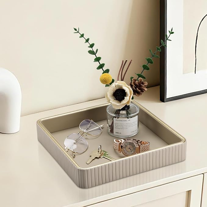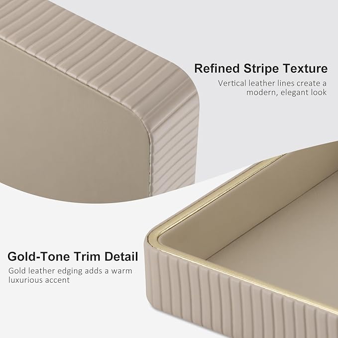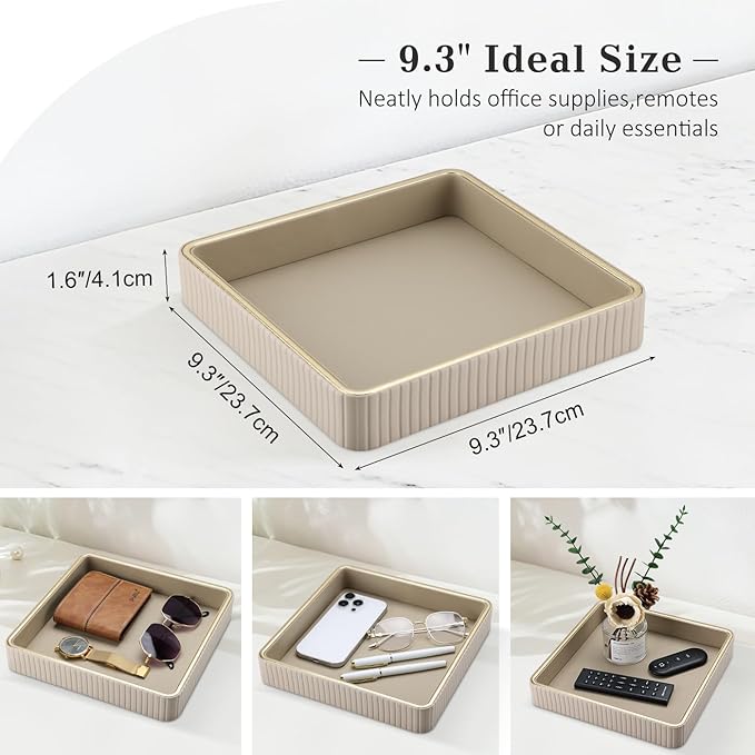- 【Elegant Leather, Effortless Versatility】 Whether used as your all-in-one valet tray, a nightstand organizer for bedside essentials, a jewelry tray on your dresser, or a stylish decorative tray in the living room, this GORESE square leather tray elevates your space with its Italian-inspired striped leather and refined gold-tone trim—bringing a modern luxury look to any corner of your home while keeping your most-used essentials right where you need them.