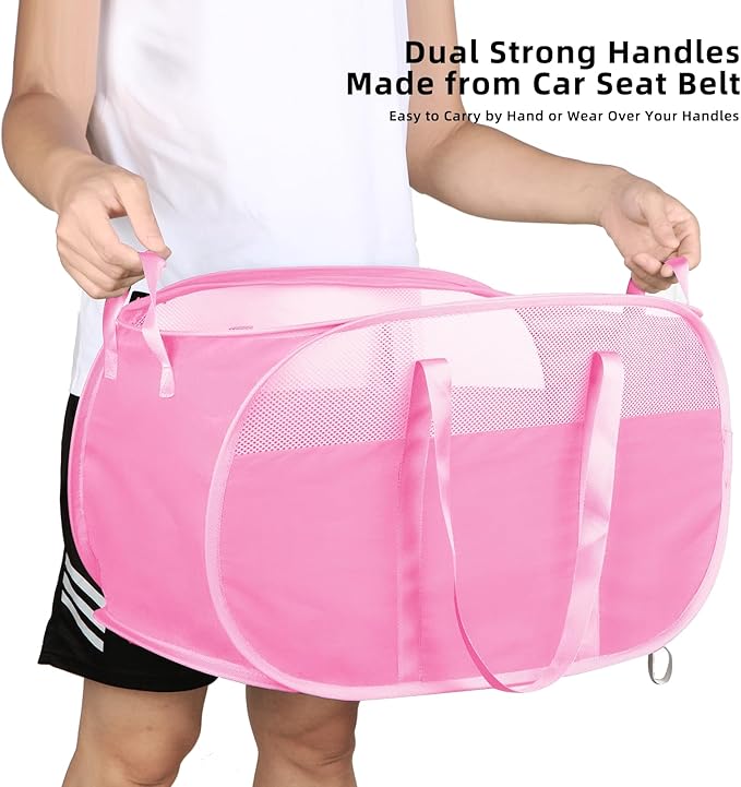 100L Collapsible Laundry Baskets, Tear Proof Pop Up Laundry Hamper with Dual Handles, Large Foldable Laundry Basket, Easy to Carry Laundry Hamper for Home, Laundry Room, Bedroom, Dorm, Travel Pink