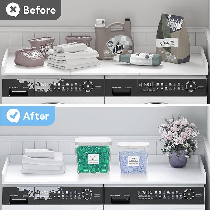 - Ideal Laundry Room Storage Solution: The transparent design and included labels allow for easy organization and quick access to your laundry essentials; measuring scoops for precise dispensing detergent; get these containers and keep your laundry room organized
