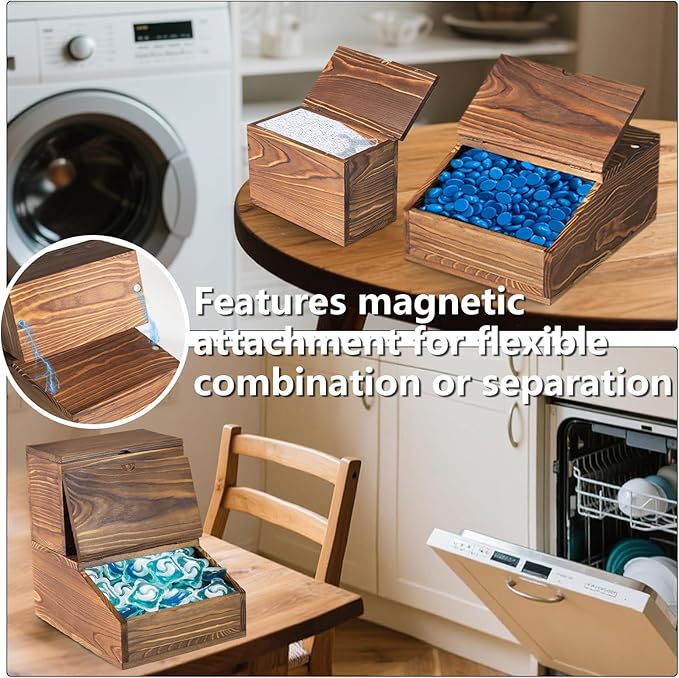 - User-Friendly Design:The wide opening at the bottom allows for easy refilling and grabbing of laundry pods and dishwasher pods.dishwasher dispenser also features a magnetic closure that effectively blocks external dust and moisture, keeping contents dry and clean. The smooth wooden surface is easy to wipe clean.