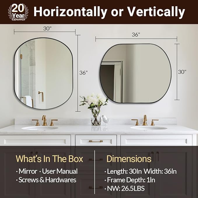 - EASY INSTALLATION: Our black oval mirror comes with FOUR reinforced D-Ring hooks and all necessary hardware for easy vertical or horizontal hanging. Heavy mirror, installation with two people is a breeze