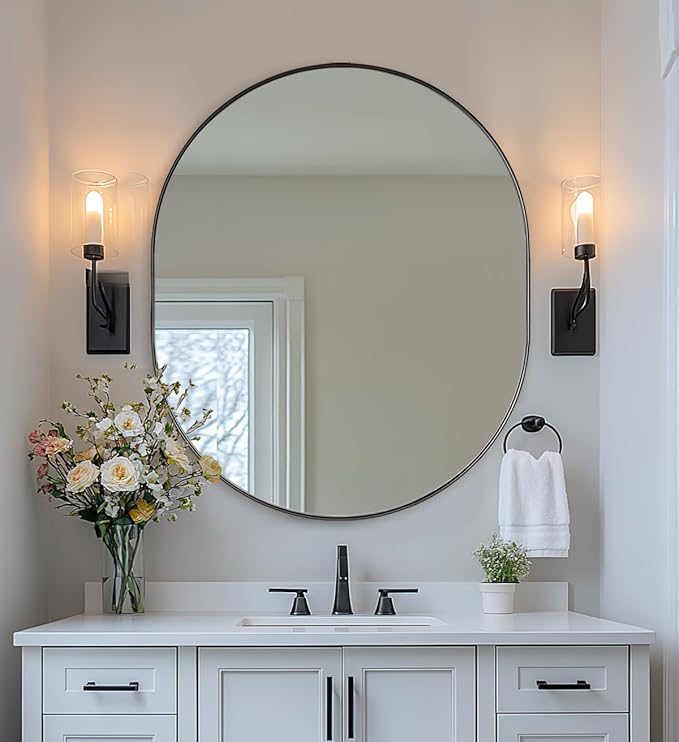 - ELEGANT DESIGN FOR NARROW SPACES: Our 30x36 inch oval black mirror is perfect for limited spaces thanks to its sleek and simple silhouette. Its matte black frame and HD Glass adds a touch of luxury to any room