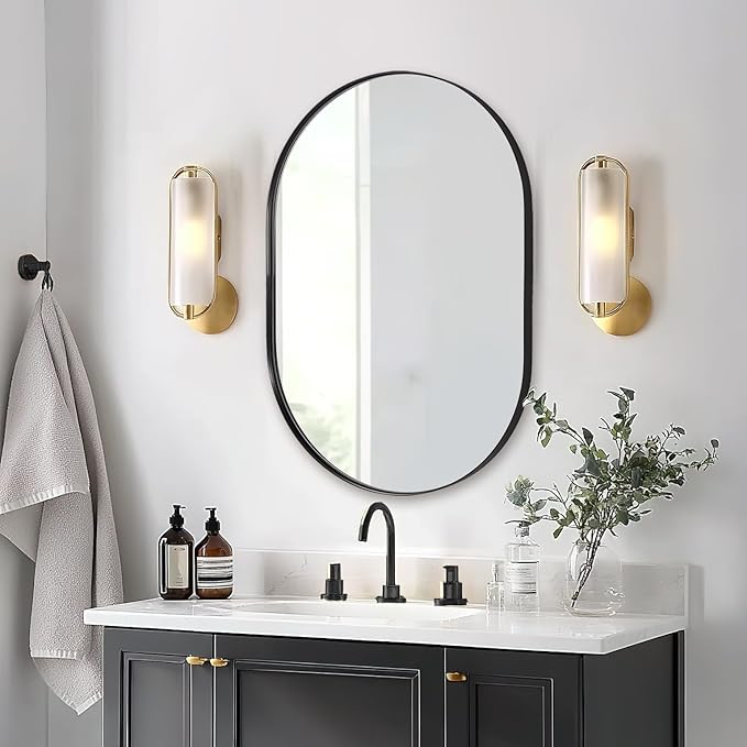 - ELEGANT DESIGN FOR NARROW SPACES: Our 24x32 inch oval black mirror is perfect for limited spaces thanks to its sleek and simple silhouette. Its matte black frame and HD Glass adds a touch of luxury to any room