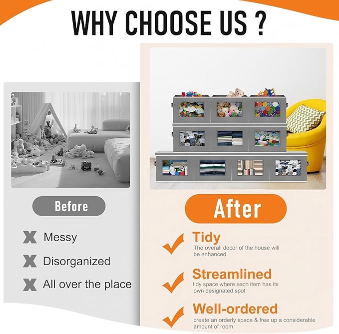 - Window Design: our storage cubes are designed with lids and windows, it will help you categorize stuffs more efficiently, and easy for you find them quickly; These closet storage bins come with handles, ensures a comfortable grip, which can be applied as a drawer