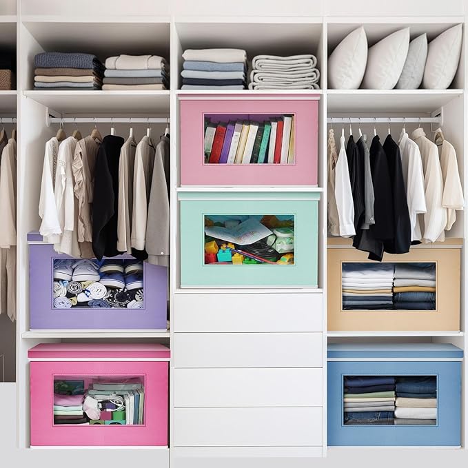 - Window Design: our storage cubes are designed with lids and windows, it will help you categorize stuffs more efficiently, and easy for you find them quickly; These closet storage bins come with handles, ensures a comfortable grip, which can be applied as a drawer