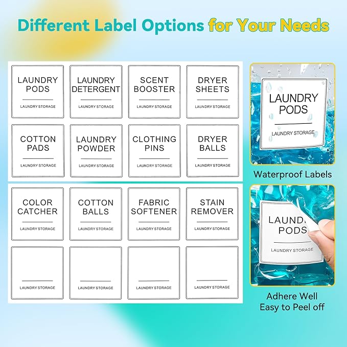- 【Package Contains】Package includes 3 laundry pods jars, 1 dryer sheet box, 3 clear scoops and 16 waterproof labels. The laundry powder holder measures 100oz. The dryer sheet container is 7.2"(L) x 4.7"(W) x 3.9"(H) and can hold up to 200 dryer sheets. This clean and coordinated laundry set boosts the organization of your home, making laundry room neat and stylish.