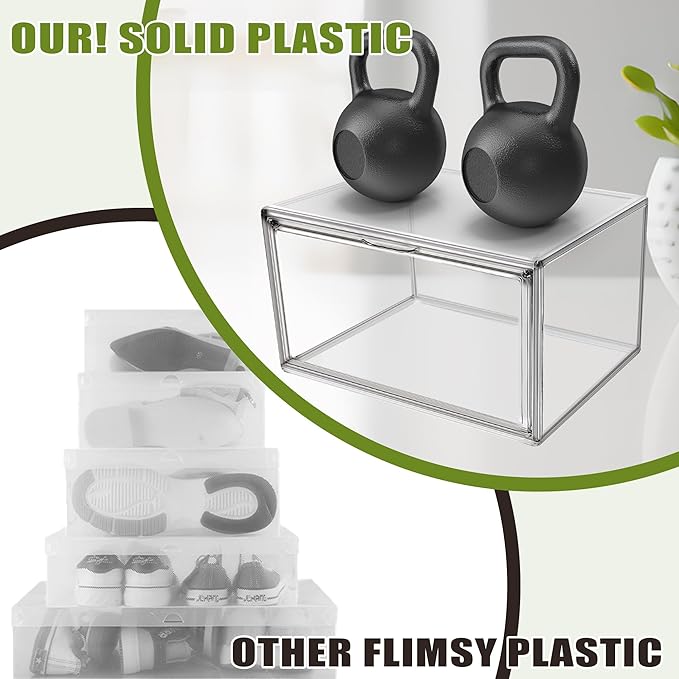 12 Pack Clear Sneaker Boxes Stackable Shoe Box Size 12.5, Acrylic Shoe Storage Organizer Transparent Storage Bins with Magnetic Acrylic Door for Closet, Sneaker Display, Cosmetic, Figure
