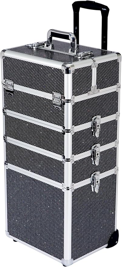 Makeup Rolling Train Case - Professional Cosmetics Organizer with Aluminum Frame, Folding Trays & Wheels, Portable for Travel & Studio (Black Diamond)