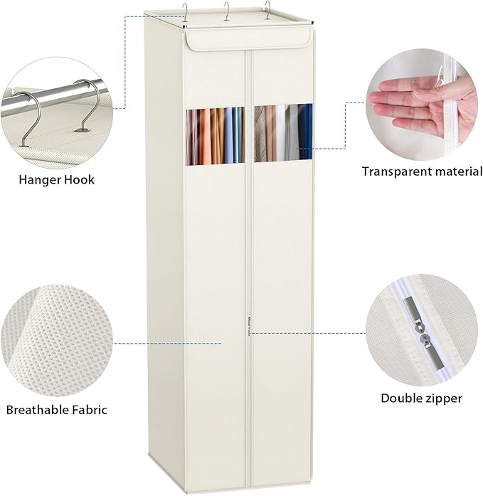 - 【Easy to Install】You can effortlessly set it up within minutes, requiring no screws or tools. Whenever you need to move the dress storage bags hanging in your closet, simply grasp and rehang them on a new pole.