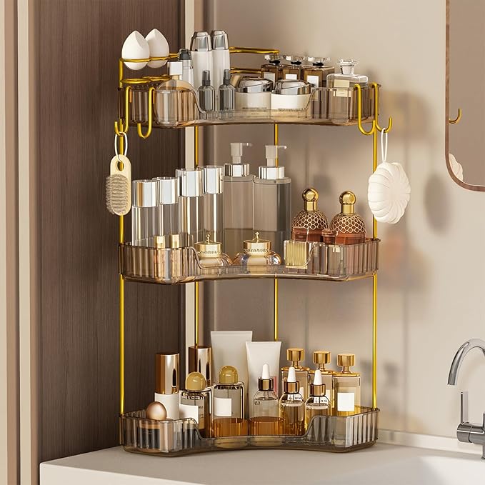 - 🎯【 Maximize Corner Space】: Adopting an innovative 90 degree right angle design, it perfectly fits the idle corners of the bathroom and dressing table, turning the cluttered countertop into a clean and orderly storage space, instantly increasing 100% of the effective storage area.