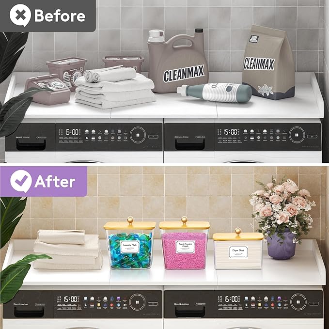 - 3+1 Organizing Solution: This set comes complete with labels and measuring scoops, allowing you to effortlessly organize a variety of items such as dryer sheets, laundry pods, liquid detergent, scent beads, soap, and dryer balls