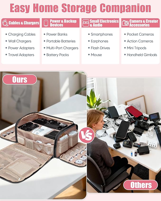 - ๐๐๐ซ๐ฌ๐๐ญ๐ข๐ฅ๐ ๐๐๐ ๐๐จ๐ซ ๐๐จ๐ฆ๐ & ๐๐ซ๐๐ฏ๐๐ฅ: More than a tech organizer, it also works as a handy pouch for home and travel โ great for makeup, jewelry, medicine kits, documents, and other small essentials