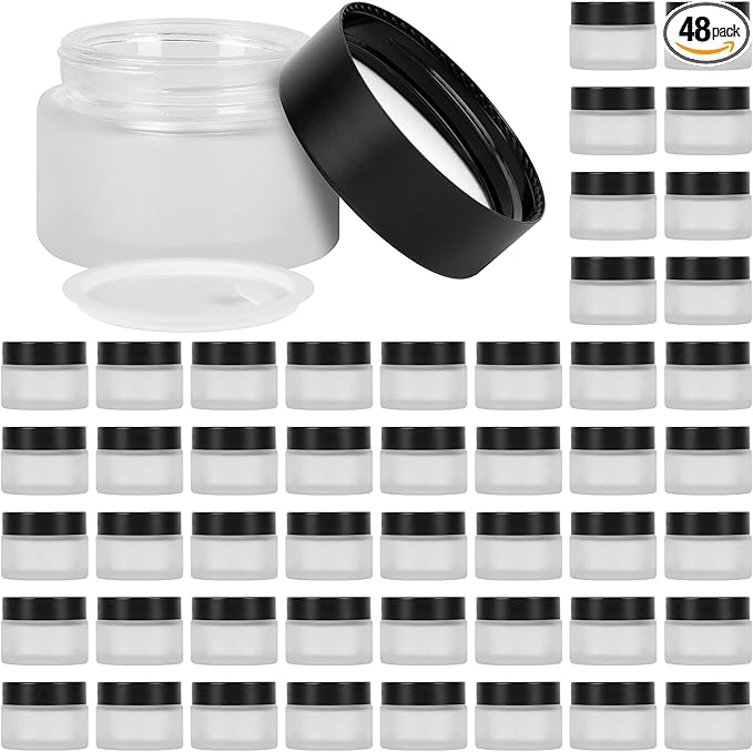 1 oz Glass Jars with Lids, Empty Cosmetic Jars, Airtight Containers with Inner Seal for Creams, Balms, Ointments, DIY Crafts, Salves (48 Pack, Clear Frosted)