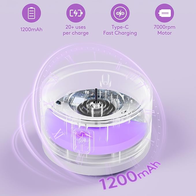 - šćRechargeable and SimplećOur Electric Makeup Brush Cleaner comes with a built-in 1200mAh battery, providing a user-friendly experience. It is easy to operate and convenient to carry, making it perfect for travel. Say goodbye to manual cleaning and embrace the simplicity of our automatic brush cleaner.
