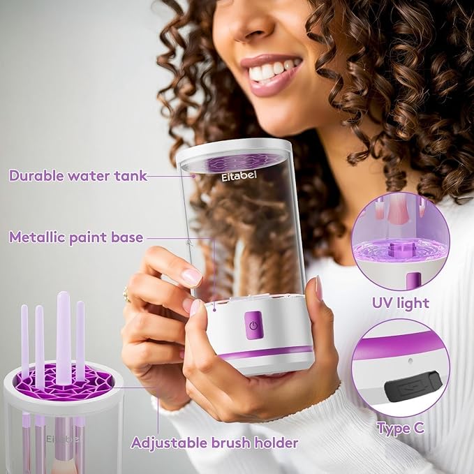- šćVersatile and CompatiblećOur Cosmetic Brush Cleaner is compatible with all sizes and shapes of makeup brushes. From small eyeshadow brushes to larger powder brushes, it can handle them all with ease. No need to worry about damaging your brushes or using multiple cleaners. Our Electric Makeup Brush Cleaner is your all-in-one solution.