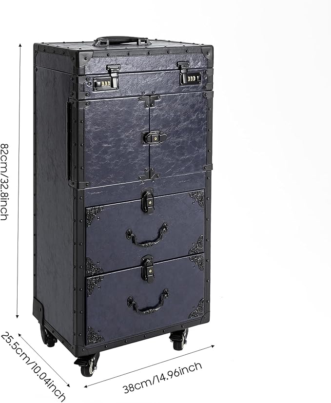 - 【Stylish & Professional Design】Featuring a classic rectangular shape with a retro-inspired look, this rolling travel case combines upscale PU texture with an elegant dark blue finish. Its sophisticated appearance emphasizes professionalism and calm efficiency, making it ideal for both work and travel.