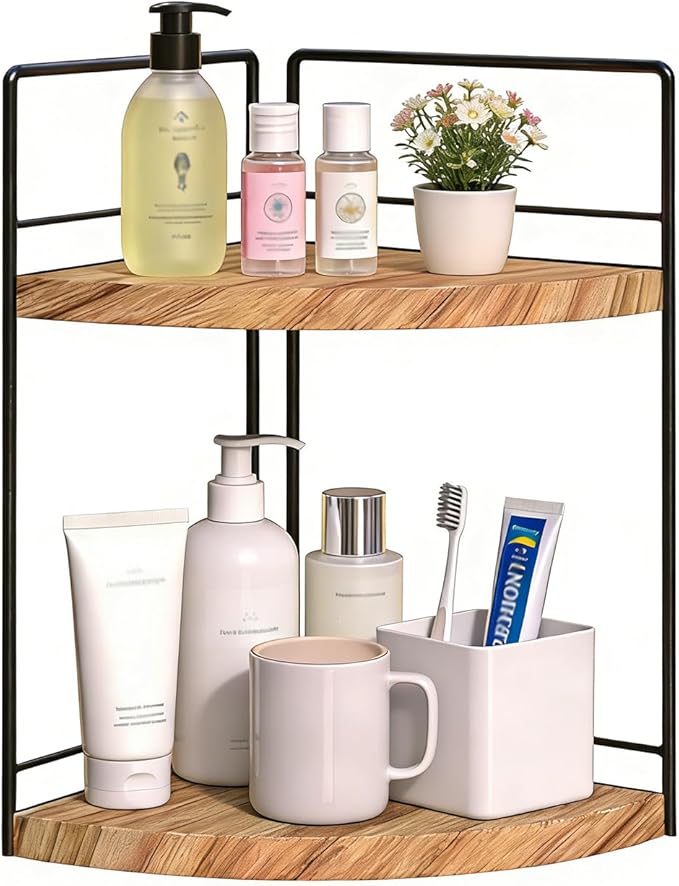 - Space-Saving Bathroom Countertop Organizer - Consolidating cluttered bathroom items onto a single bathroom corner shelf not only keeps countertops tidier and more aesthetically pleasing but also makes better use of limited space.