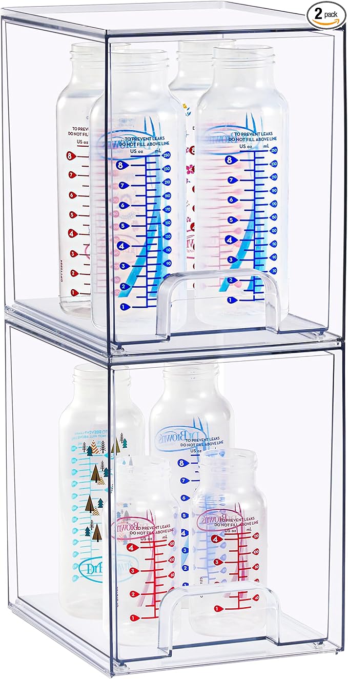 Sorbus Stackable Acrylic Storage Drawers, 2 Pack Clear Plastic Organizer Bins for Baby Bottles, Makeup, Bathroom, Vanity & Kitchen Countertop Organization, Pull-Out Drawer Design for Cabinets & Pantry